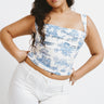 Meet Imogene, our latest silhouette in our iconic Blue Toile print. The Imogene is a fully lined corset with a cowl neckline and back boning. She sure is one of a kind. Pair her with your favorite denim, or go head to toe with our matching Moni Skirt.