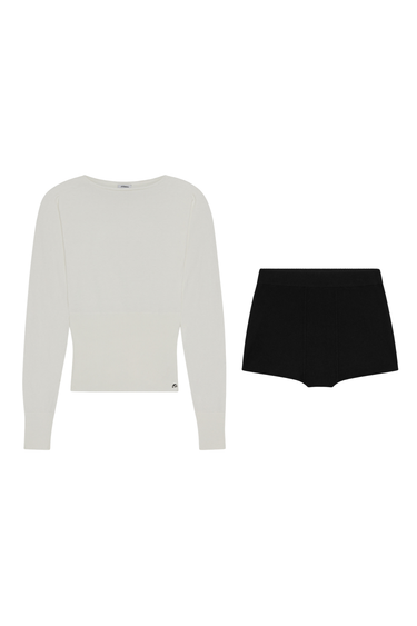 Set includes Odessa Top in White and Emilia Short in Black.