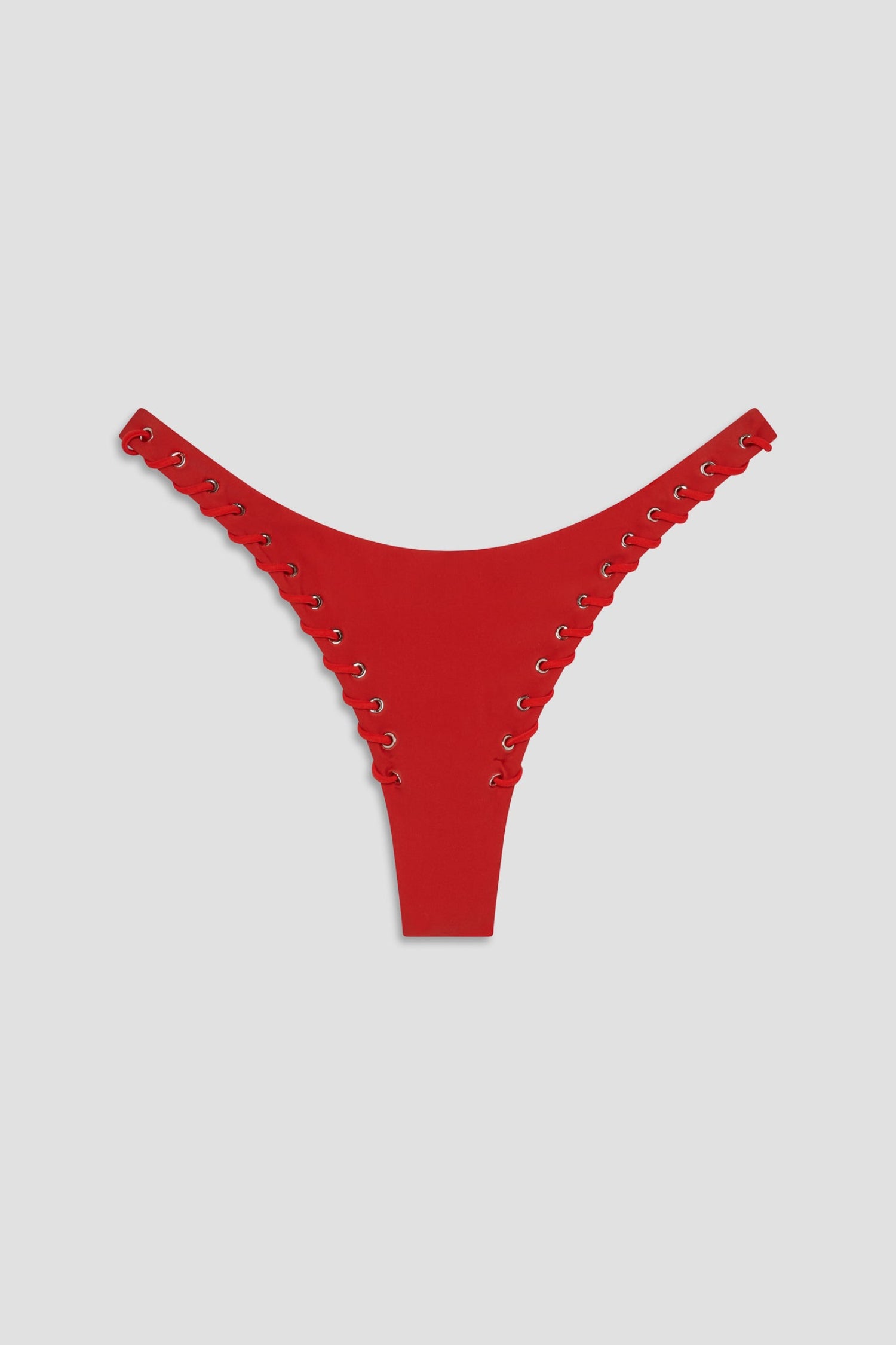 Our bestselling Rio Bottom is back in red. She's a cheeky low-rise bikini with all-around laced stitch detailing. Size up for more coverage.